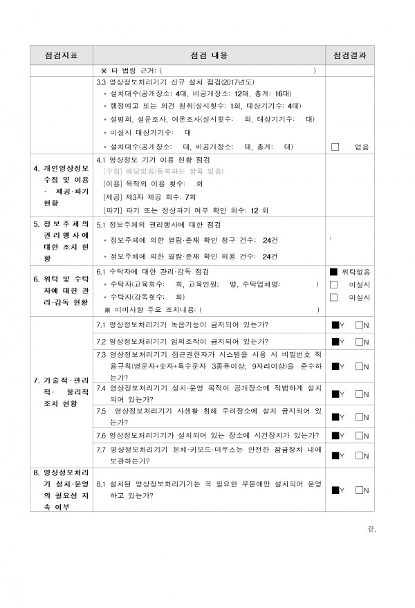 2017년 영상정보처리기기 자체점검실시 결과 공지