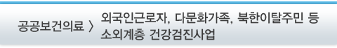 •북한이탈주민 : 기초건강검진, 수술비, 외래진료비 등 지원