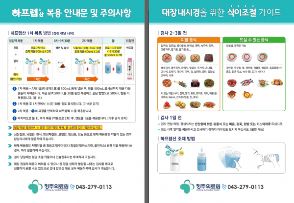 종합검진시 대장내시경 하시는 분들 대장약 복용안내문 입니다.